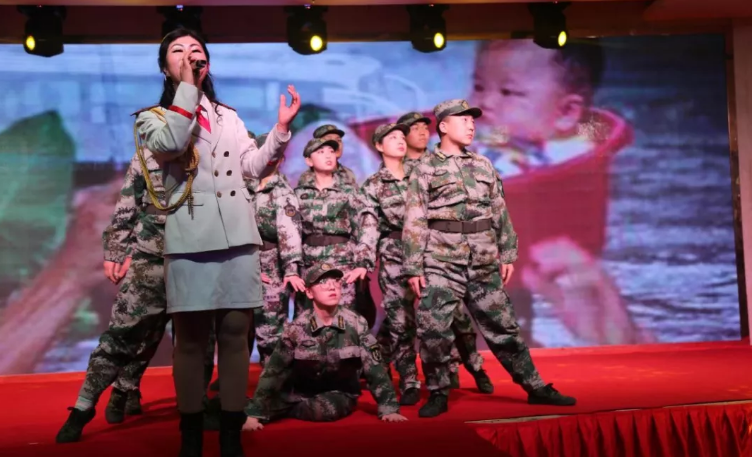 情景劇《天亮了》拉開(kāi)了第二篇章的序幕,整個(gè)節(jié)目以軍裝為主色。該作品以剛?cè)峤Y(jié)合的舞蹈,優(yōu)美動(dòng)人的歌聲,配合舞臺(tái)燈光效果,氣勢(shì)恢宏,極具視覺(jué)沖擊效果,將晚會(huì)氛圍引向高潮,獲得了一陣又一陣的掌聲,贏得了現(xiàn)場(chǎng)領(lǐng)導(dǎo)和所有觀眾的一致好評(píng)。