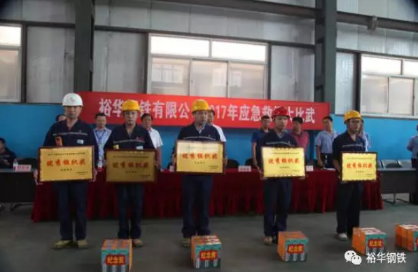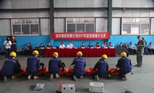2017年6月是中國(guó)第16個(gè)安全生產(chǎn)月,為進(jìn)一步提高公司各級(jí)煤氣防護(hù)、消防安全人員的應(yīng)急救援水平,正確處置和施救,裕華鋼鐵公司于6月12日上午組織開展了2017年“安全生產(chǎn)月”應(yīng)急救援大比武競(jìng)賽活動(dòng)。煉鐵東區(qū)、煉鐵西區(qū)、煉鋼廠、燒結(jié)廠、發(fā)電廠制氧廠、軋鋼廠共六個(gè)單位組成六支隊(duì)伍,每支隊(duì)伍共有7名隊(duì)員參加了這次比武活動(dòng)。